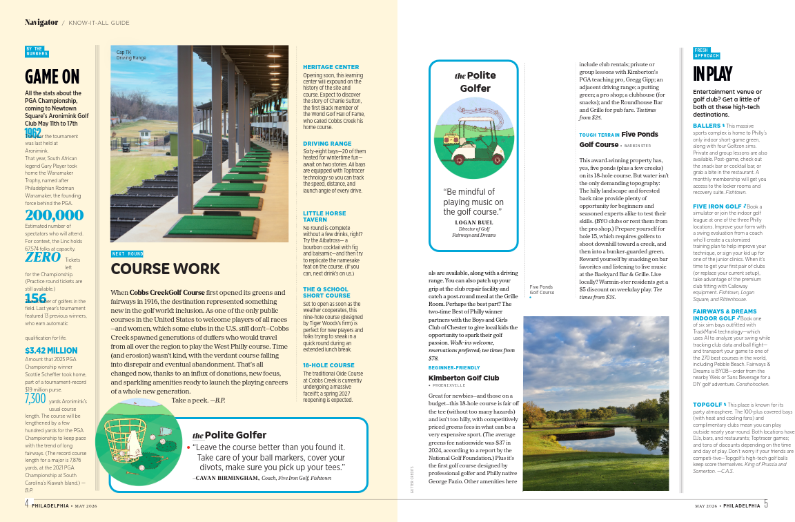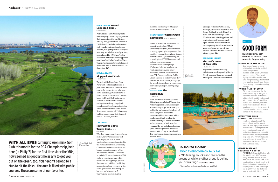 A collection of three spot illustrations for Philadelphia Magazine, plus a portrait of influential golfing community member, Kyke Spaulding.